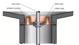 To make this possible the diaphragm is made from two layers: On the low pressure side it consists of a fabric layer, on the high pressure side it consists of a rubber layer.